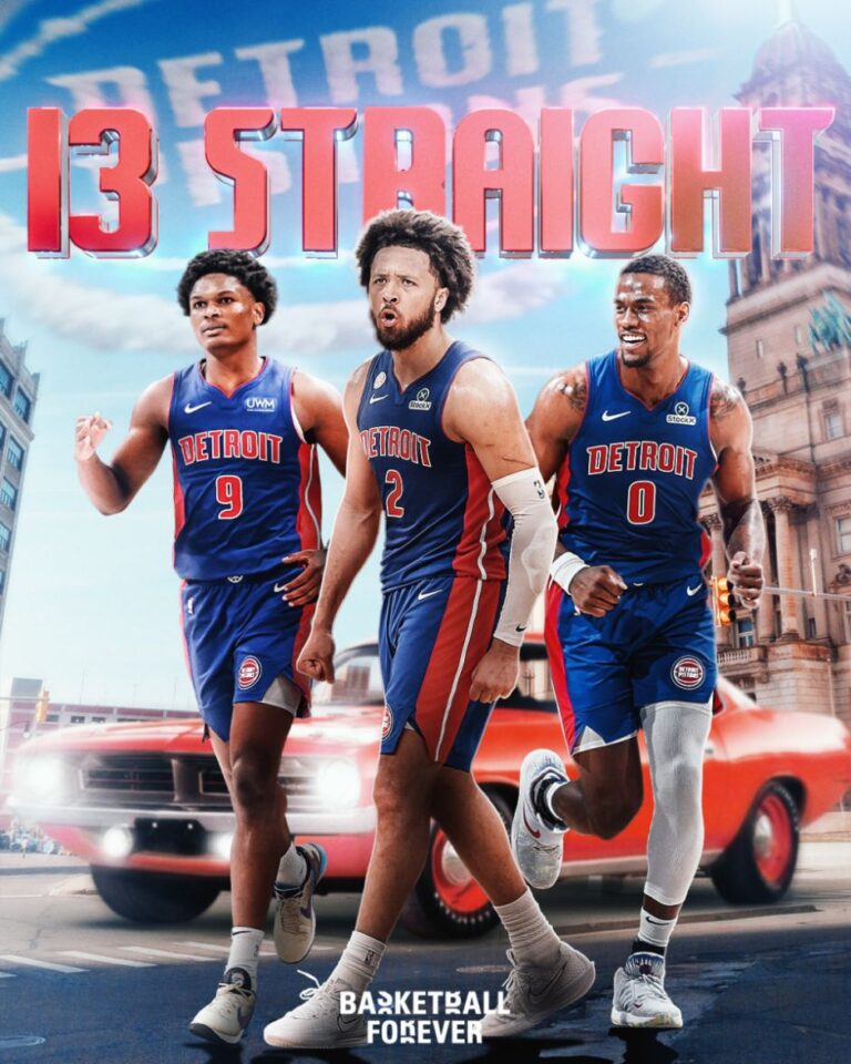 NBA比分直播实时更新活塞队取得13连胜,追平队史纪录!揭开东部黑马的蜕变:目标直指第四座总冠军奖杯。